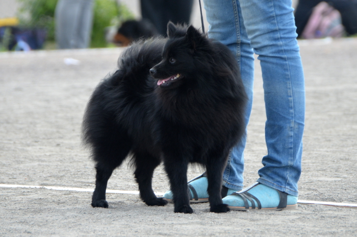 Tänään suunnattiin auton nokka kohti Lahtea Luna kyydissä. Oltiin vähän myöhässä ja paikalle ehtiessämme oli kahdeksan koiraa ennen meitä. Lunalla on juoksut päällä ja muut koirat kiinnostivatkin kovasti. Kehän laidalla sinkoiltiin joka suuntaan ja ehdinkin jo ajatella, että mitähän tästä tulee. Kehässä Luna juoksi varmaan parhaiten, mitä missään aiemmin tiiraillessaan uroksia kehän laidalla. Pöydällä aloitettiin taas nojailu ja väisteltiin tuomarin kättä. Tuomari koitti kovasti jutella Lunalle ja rauhoitella sitä ja pientä edistystä oli ehkä havaittavissa. Tulokseksi tuli Erittäin Hyvä ja ennen kilpailuluokkaa tuomari tuli sanomaan, että tykkää koirasta tosi paljon, mutta koska luonne on niin arka, joutui alentamaan palkinnon EH:ksi. Noh, nyt on reilu kuukausi aikaa seuraaviin näytelmiin, ei auta kun reeniä reeniä reeniä!